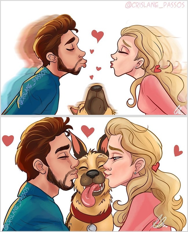 מחקר מראה שגברים הם הראשונים לומר ״אני אוהב אותך״. בכל מקרה, מילים בלבד אינן מספיקות. תמיכה, אמון, תשוקה וחוש הומור בריא הם אבני הבניין העיקריות למערכת יחסים יציבה. אמן ברזילאי בשם כריסלאן פסוס יוצר איורים מגניבים של זוג, מקס ויוליה, שנראה ויודע מהי אהבת אמת.
