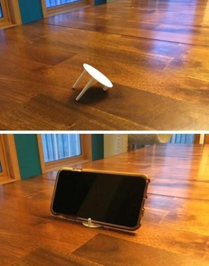 17. חתכו את אחת הרגליים מהמעמד לפיצה, שישמש מעתה מעמד לסמארטפון