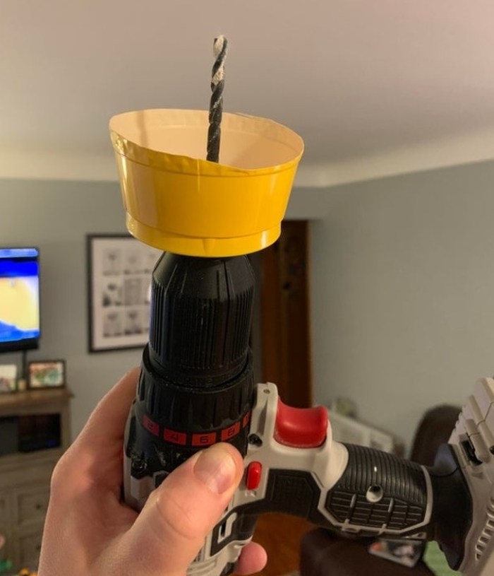 7. קודחים חור בתקרה? כוס פלסטיק תחסוך לכם את המאמץ בניקוי האבק!