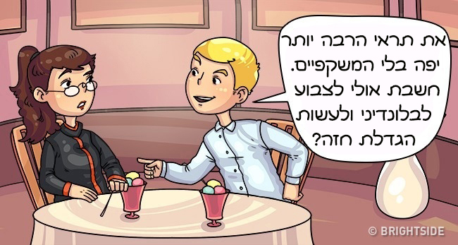 אבל חכי, לא צריך להביא כל אחד להורים. גם אם בהתחלה הוא נראה כמו בן הזוג האידיאלי, נסי לשים לב למה שהוא אומר. מאחורי המילים מסתתרות משמעויות נוספות שיכול להיות שפיספסת.