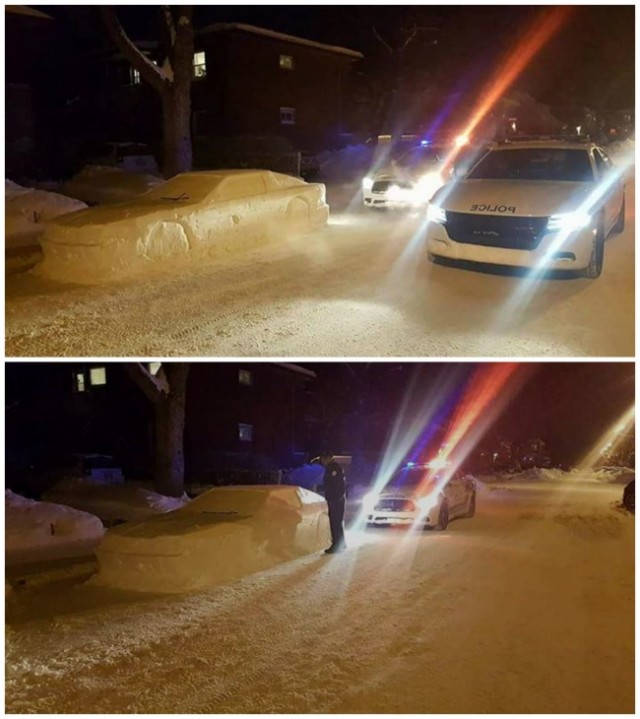 "חנית במקום אסור ואני אתן לך דו"ח. אוי, סליחה, טעות שלי".<