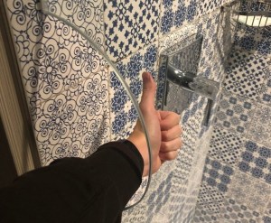 מקלחת עם חור בדלת על מנת שתוכל לבקר את הטמפרטורה של המים בלי להירטב