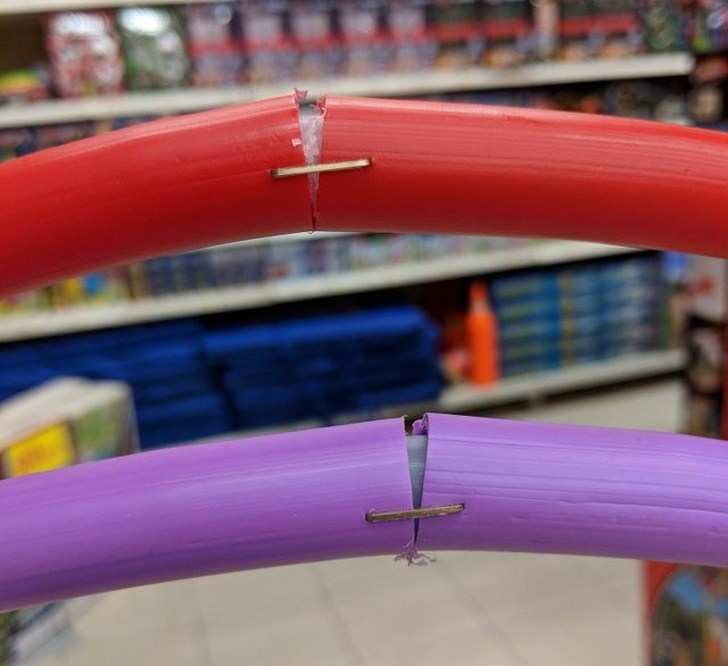 19. “ראיתי את החישוק הזה בחנות הצעצועים וחשבתי לתומי שמישהו תיקן אותו בצורה חובבנית, אבל אז לקחתי עוד אחד… מסתבר שככה תכננו את המוצר.”