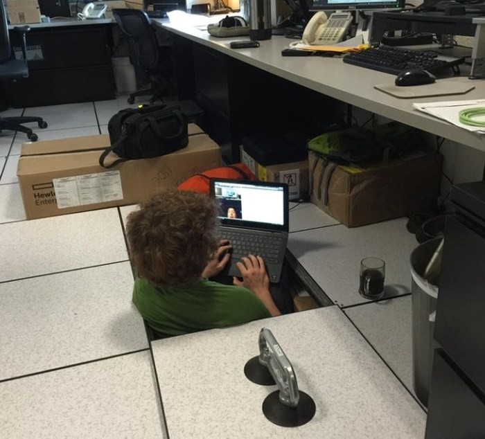 עמיתי לעבודה החליט ששולחנות מיותרים.<