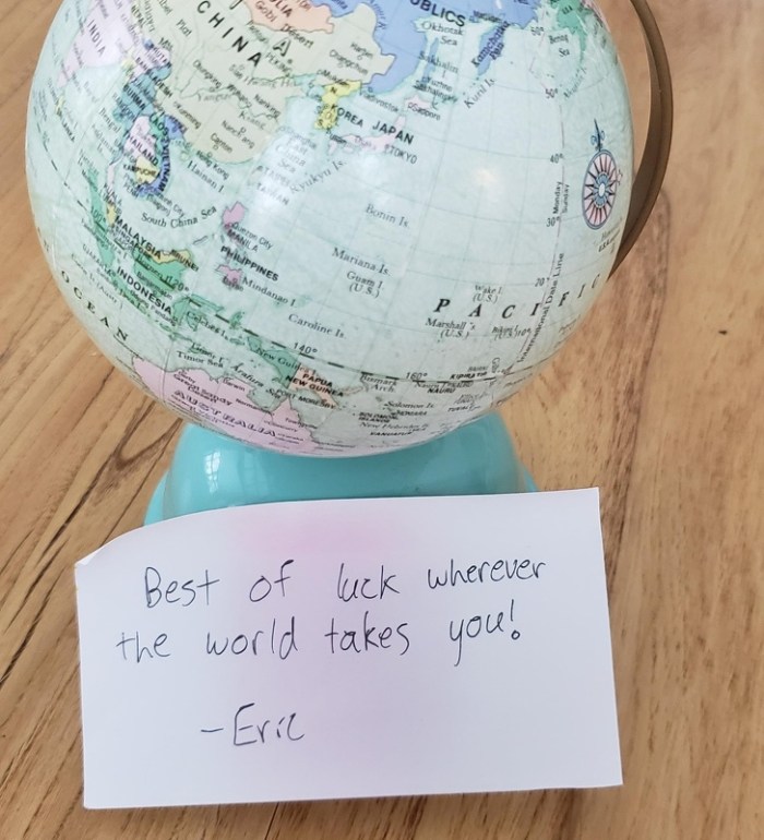 עמיתי לעבודה עוזב ואני מאחל לו כל טוב לאן שהעולם יקח אותו.<