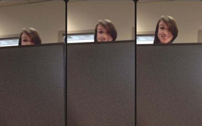 אני נמוכה מכדי לראות את הקולגות שלי מעבר לקירות התא. אז, הדפסתי את התמונה שלי והדבקתי על מקל, וכשצריך אני משתמשת בזה כדי שיראו אותי.<