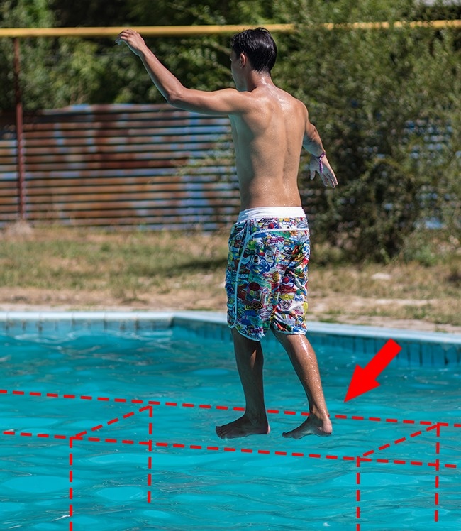 הטריק הזה מבוצע בדרך כלל על אדמה בוצית או נהרות עכורים, או אפילו בריכות או מקווי מים מעשי יד אדם. המטרה העיקרית היא לגרום למשטח זכוכית או פלסטיק שקוף להופיע כבלתי נראה לקהל. כעת אתם יכולים ללכת על המים מבלי להיות בניו של האל.