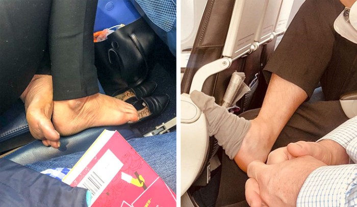 רוב הנוסעים עשויים למצוא את ההרגל הזה מטריד במיוחד, וכולם יכולים להעיד שעשו זאת בעצמם. ישנן מספר סיבות מדוע לא מקובל לחלוץ נעליים במהלך הטיסה. הדבר החשוב ביותר הוא, שזה לא מנומס וחסר כבוד כלפי הנוסעים בסמוך אליכם, במיוחד אם כפות הרגליים או הגרביים שלהם מלוכלכות או מסריחות.