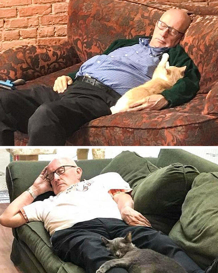 5. האיש הזה מפרסם ברשת תמונות שלו “ישן עם חתולים” כדי לעזור למקלט החיות בו הם חיים לגייס כסף
