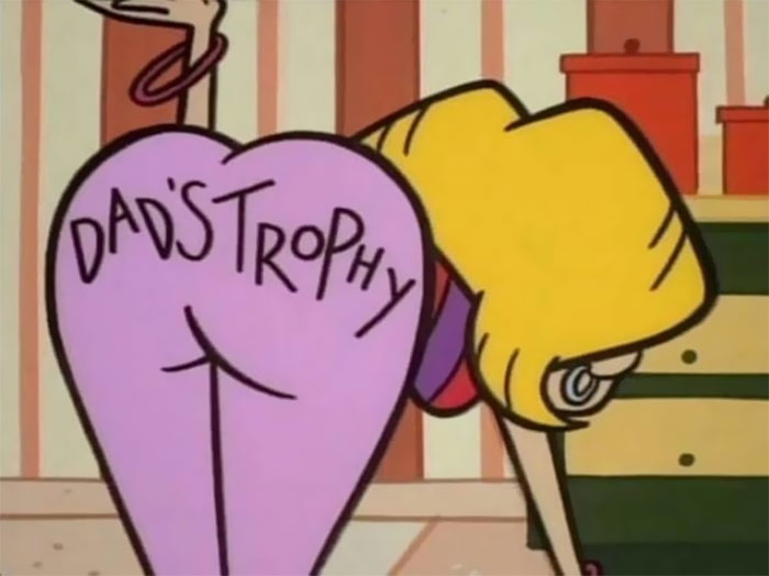 12. הכיתוב על ישבנה: “הפרס של אבא”. הורים, בבקשה אל תתנו לילדים שלכם לצפות ב”מעבדה של דקסטר”