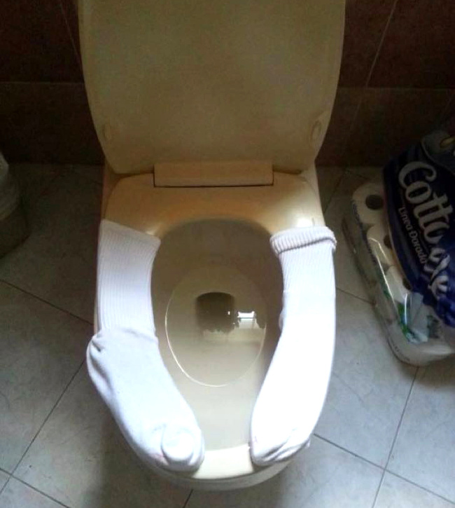אם אתם לא נהנים לשבת על האסלה הקרה, השתמשו בגרביים שלכם