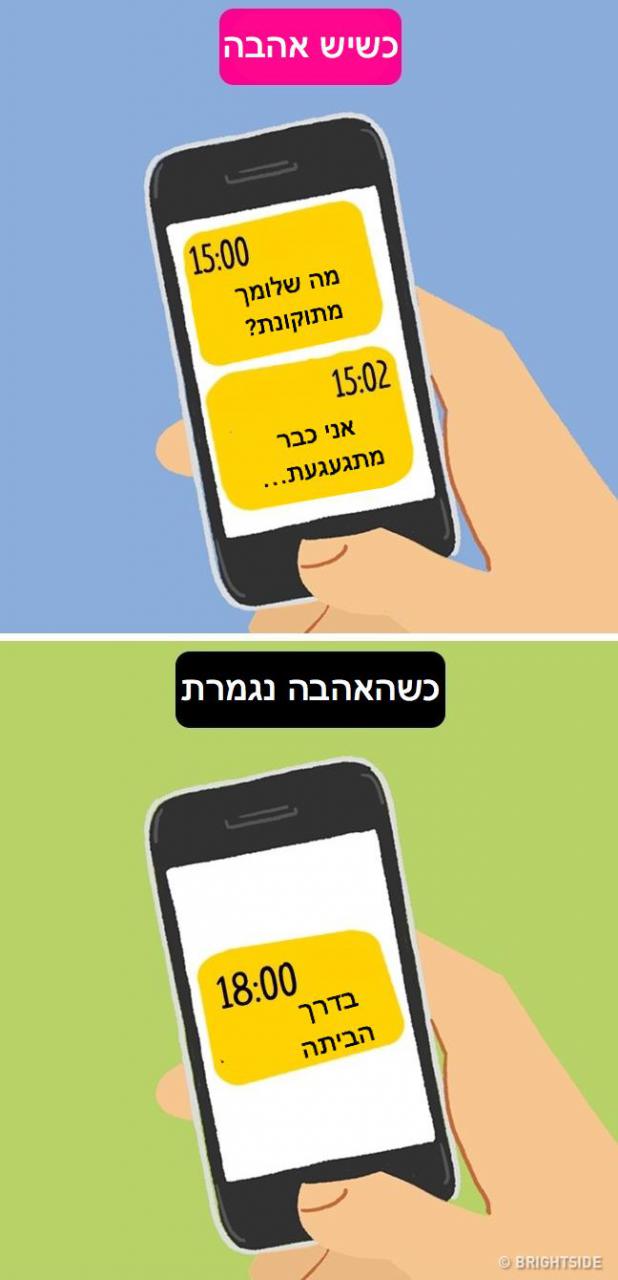 כולנו יודעים שכל אהבה או מערכת יחסים, יכולה להגיע ל”מבוי סתום”, שלא לומר – הסוף.אז נכון, בזוגיות ארוכה, גם כשיש אהבה, הרומנטיקה נשחקת, אנחנו מגלים תכונות אצל בני הזוג שלנו, שפחות נראות לנו פתאום ובכלל “פחות זורם” מבעבר, וזה טבעי.אבל כשיש את הבסיס להכל – אהבה, אפשר להתגבר על קשיים, לעבור תקופות פחות טובות ולעשות מאמץ לשפר ולהשתפר.אלא אם כן, האהבה נעלמה לה… 8 האיורים הבאים (שהם מציאותיים וגם קצת עצובים) ממחישים מה קורה כשבת הזוג כבר לא אוהבת (בטח לא כמו שאהבה פעם), אם אתם רואים מצבים מוכרים מידי, אולי כדאי לבדוק את עצמכם – האם אתם עדיין אוהבים?